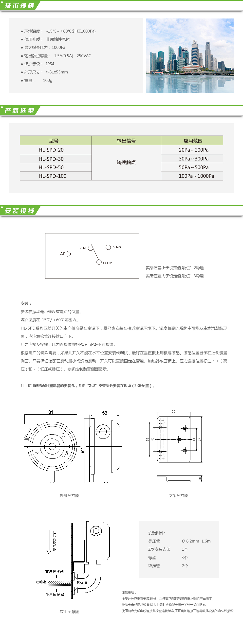 HL-SPD系列壓差開(kāi)關(guān)可用于感知管道中的非腐蝕性氣體的壓力差、真空、過(guò)壓和氣流差等參數(shù),常規(guī)應(yīng)用包括:監(jiān)測(cè)過(guò)濾網(wǎng)阻塞報(bào)警裝置、通風(fēng)管道中氣體監(jiān)測(cè)、控制可變氣體容積系統(tǒng)中的最大氣流、燃燒爐中氣體控制。