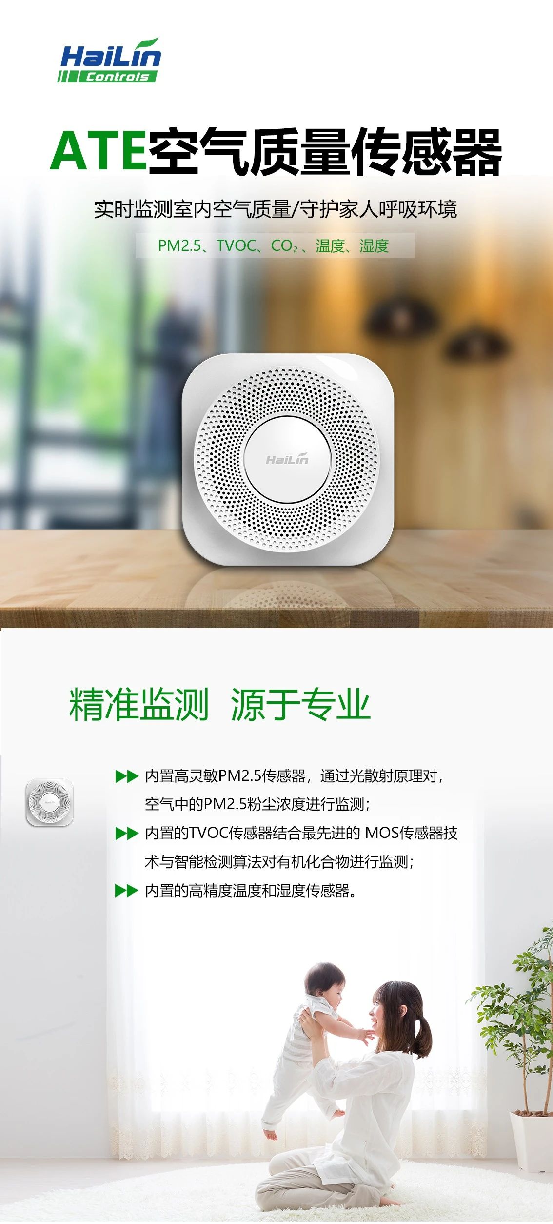 海林ATE空氣質量傳感器讓你成為健康空氣“小專家”,實時掌握室內空氣狀況,給家人更精準的健康呵護。