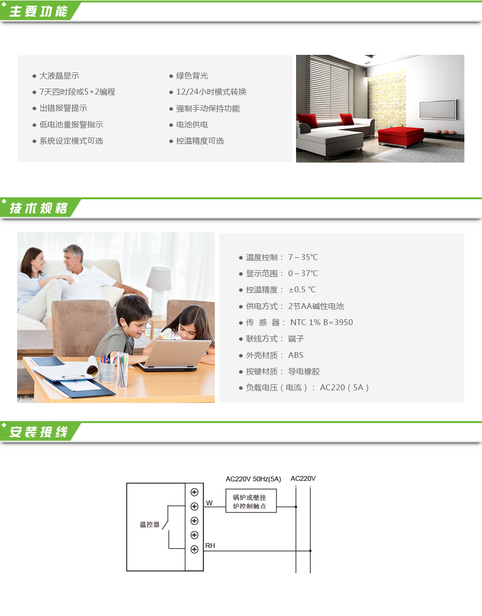 鍋爐溫控器A3253使用電池供電,用于控制燃氣壁掛爐、燃油及電子鍋爐等制熱設備,適用于家庭、辦公樓、寫字樓、學校等場所的采暖溫度控制。